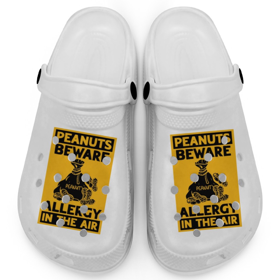 Buy eye-catching Peanuts Beware Allergy In The Air Peanut Allergic Clogs or see more Clogs products at Printblur shop now to explore many surprises from our shop!