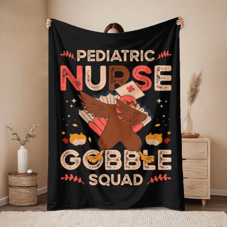 You are shopping for a stunning and trendy product Pediatric Nurse Gobble Squad Throw Blankets For Black belong theme Throw Blankets at Printblur
