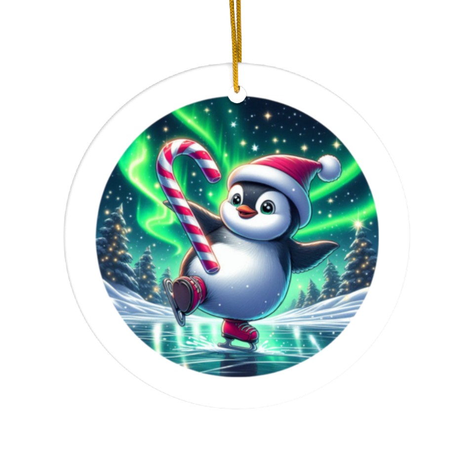 You are viewing an exclusive and elegant product Penguin's Northern Lights Skate Ceramic Ornaments For WHITE belong theme Ceramic Ornaments at Printblur