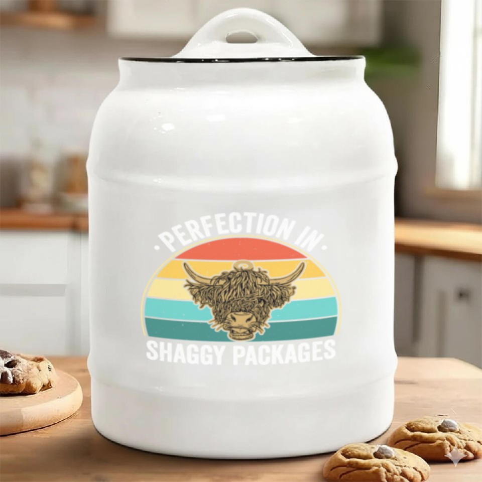 Buy eye-catching Perfection In Shaggy Packages Highland Cow Ceramic Cookie Jars or see more Ceramic Cookie Jars products at Printblur shop now to explore many surprises from our shop!