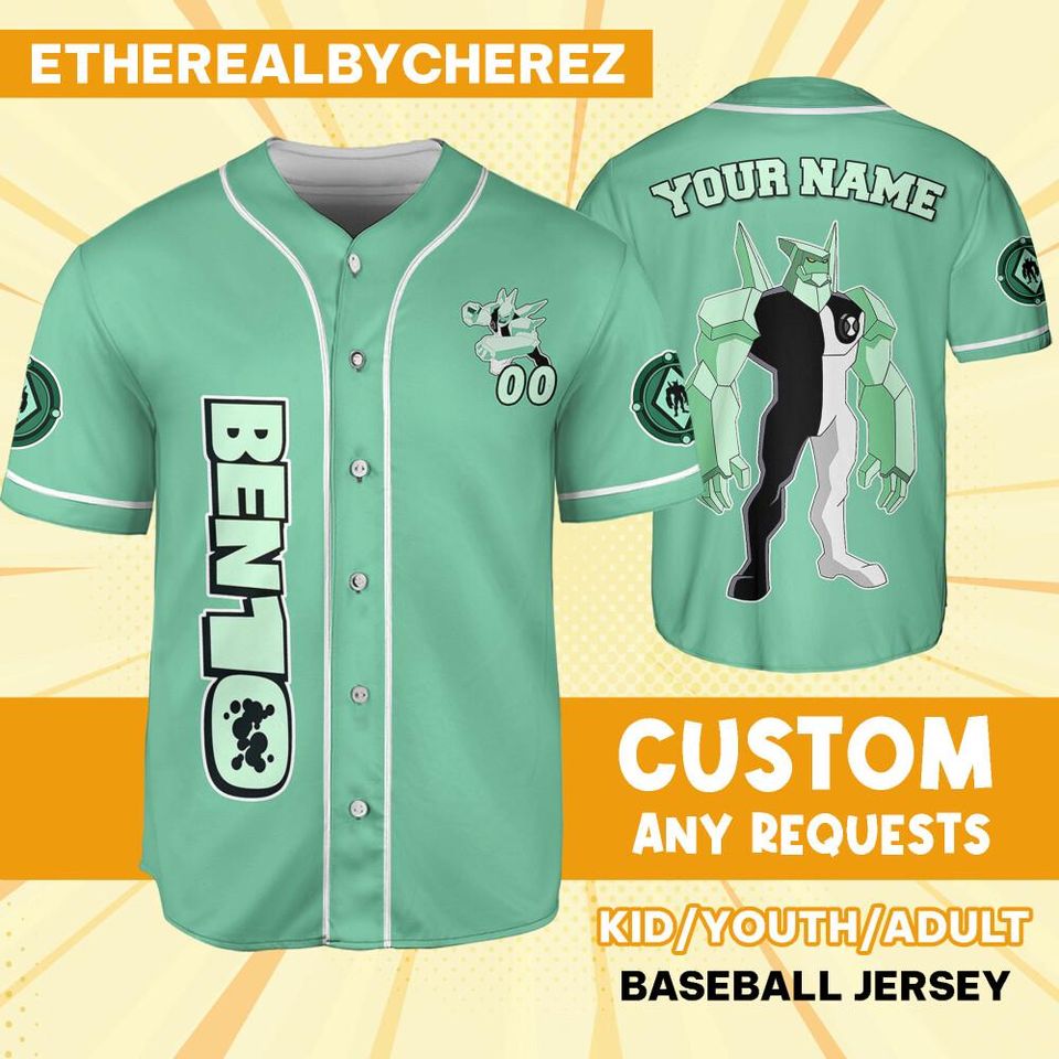 Shop for attractive Personalize Ben 10 Petrosapien Green White Jersey, Cartoon Baseball Team Outfit or see more Baseball Jerseys products on https://printblur.com right now!