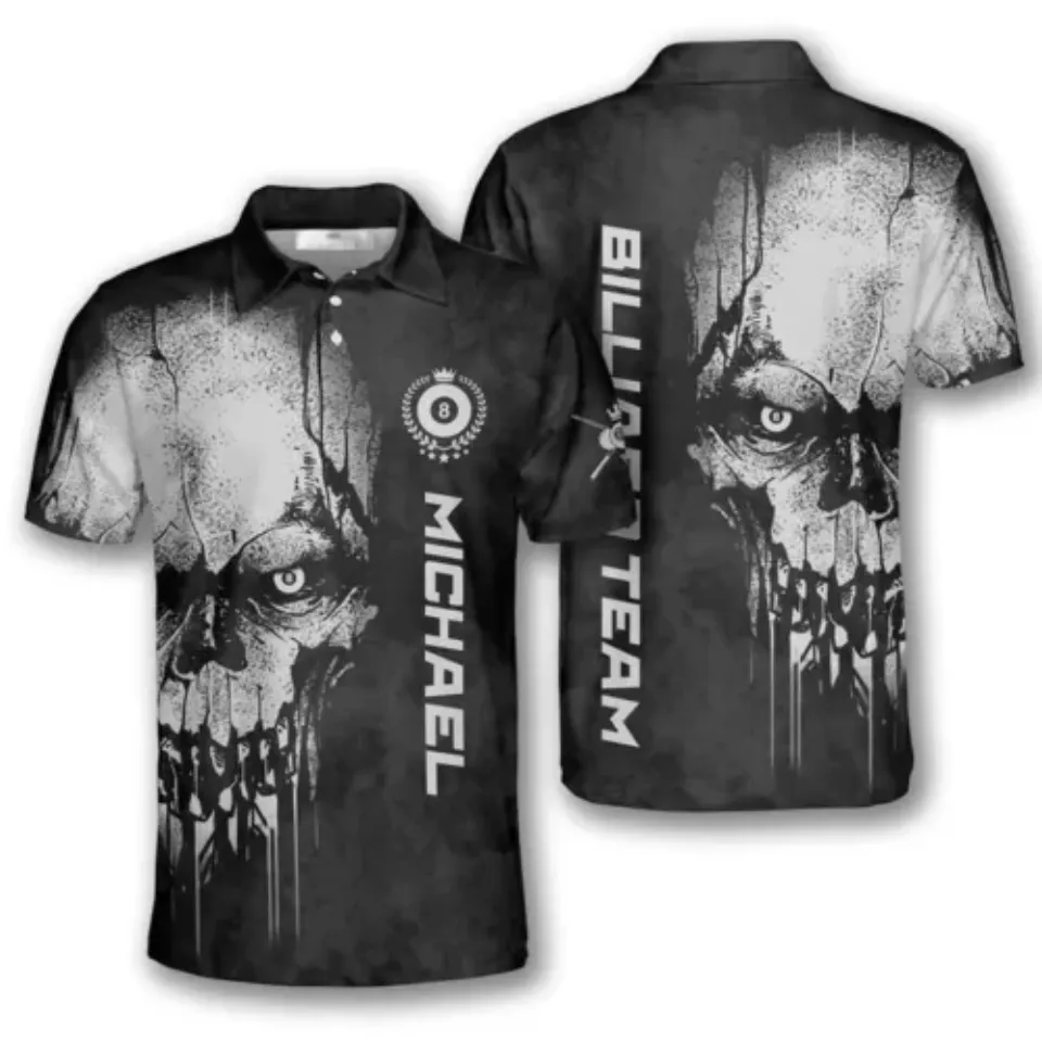 You're searching for a one-of-a-kind product Personalized 3D Billiard Balls Skull Pool Shirts Customized For Unisex Fans For Men belong theme Polo shirts at Printblur