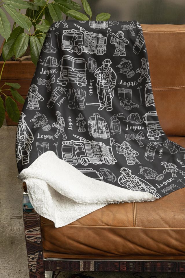 Buy stunning Personalized Firefighter Blanket, Custom Firemen Minky Blanket, Customized Fire Station Sherpa Blankie, Unique Back to School Kidsroom Decor or see more Fleece Blankets products at Printblur right now to receive many amazing discounts!