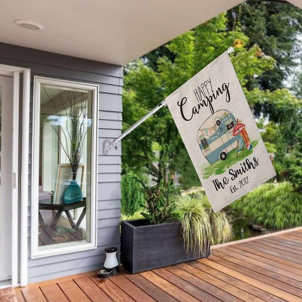 Buy eye-catching Personalized Happy Camping House Flag Custom Family Name or see more House Flags products at Printblur shop now to explore many surprises from our shop!