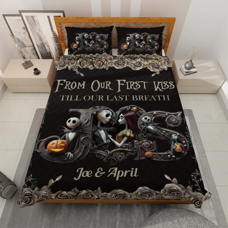 You're searching for a one-of-a-kind product Personalized Jack & Sally From Our First Kiss Till Our Last Breath Quilt Bed Set For belong theme Quilt Sets at Printblur
