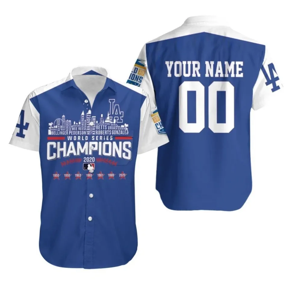 You're taking a peek at the product Personalized Los Angeles Dodgers Team Name World Series Champions Hawaiian Shirt For Kids belong theme Hawaiians at Printblur
