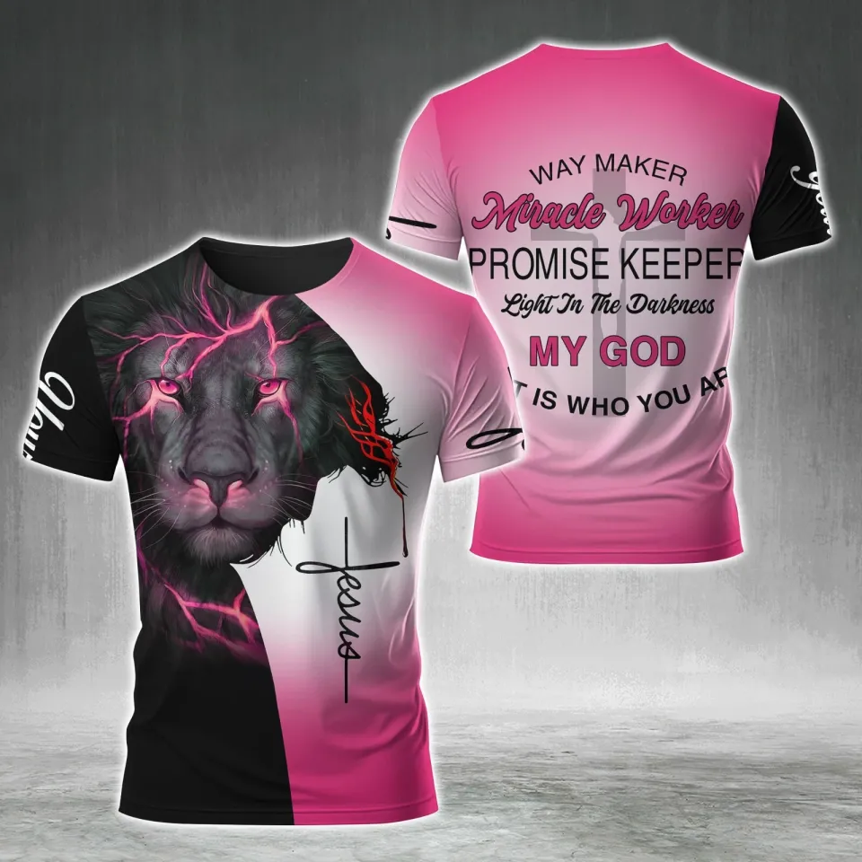 You are seeing a unique and impressive product Personalized Name Lion Cross Light Way Maker Miracle Worker Jesus 3D Shirt For Kids belong theme 3D T Shirts at Printblur