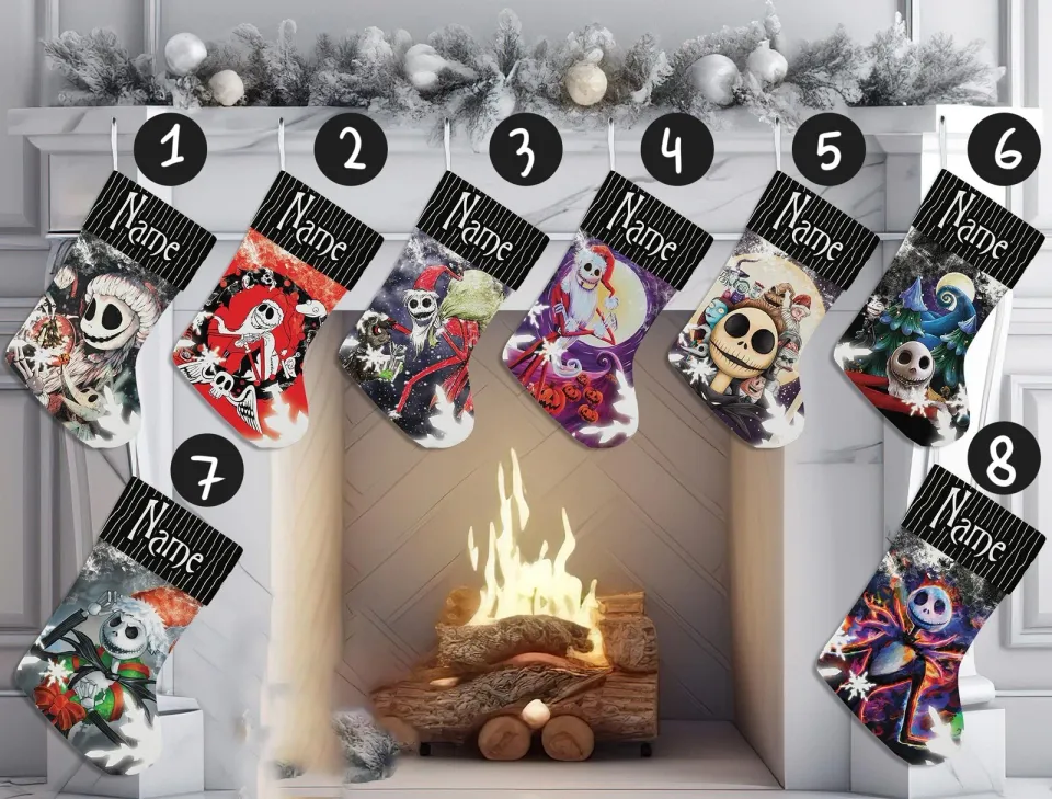 The item hot trend you're looking at is Personalized Nightmare Before Christmas Jack Skellington Festive Xmas Stocking For belong theme Christmas Stockings at Printblur
