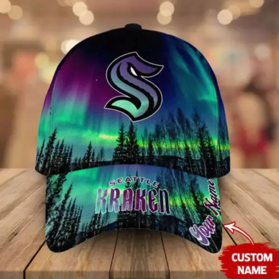 Buy stunning Personalized Seattle Kraken Baseball Cap Northern Lights Hockey Hat Gift or see more Baseball Caps AOP products at Printblur right now to receive many amazing discounts!