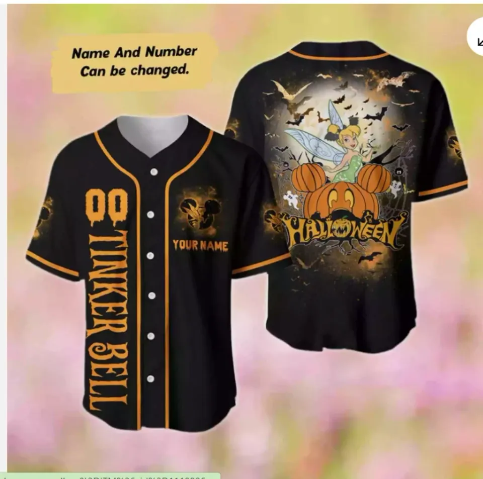 Buy eye-catching Personalized Tinkerbell Halloween Pumpkin Spooky Season Baseball Jersey Shirt or see more Baseball Jerseys products at Printblur shop now to explore many surprises from our shop!