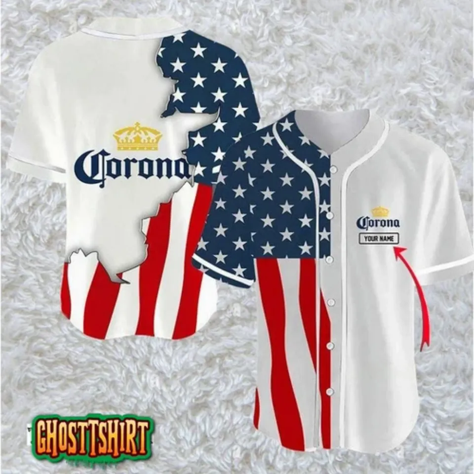 Buy stunning Personalized US Flag Corona Baseball Jerseys or see more Baseball Jerseys products at Printblur right now to receive many amazing discounts!