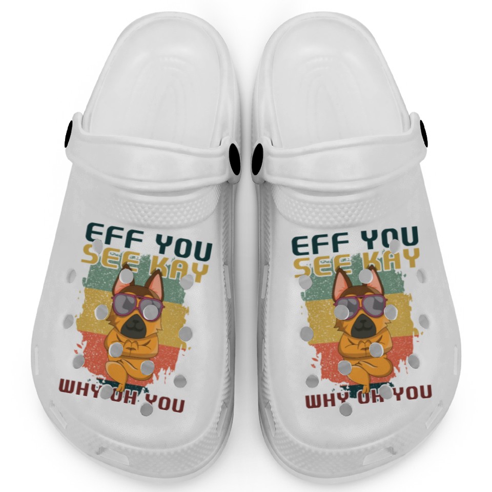 You're looking at the eye-catching product Pet Dog Owner Shepherd Belgian Malinois Relax Yoga Clogs For Kids WHITE belong theme Clogs at Printblur