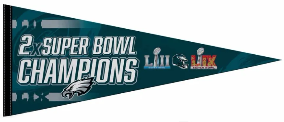 Buy eye-catching Philadelphia Eagles 2-Time Super Bowl Champions Triangle Pennant or see more Triangle Pennants products at Printblur shop now to explore many surprises from our shop!