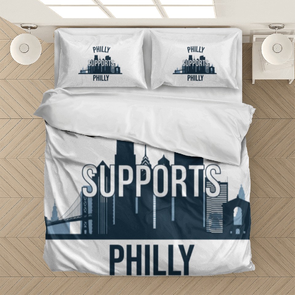 Own fascinating Philly Supports Philly skyline blue transparentbg Bedding Sets or see more Bedding Sets products now from Printblur shop to enjoy your shopping time!