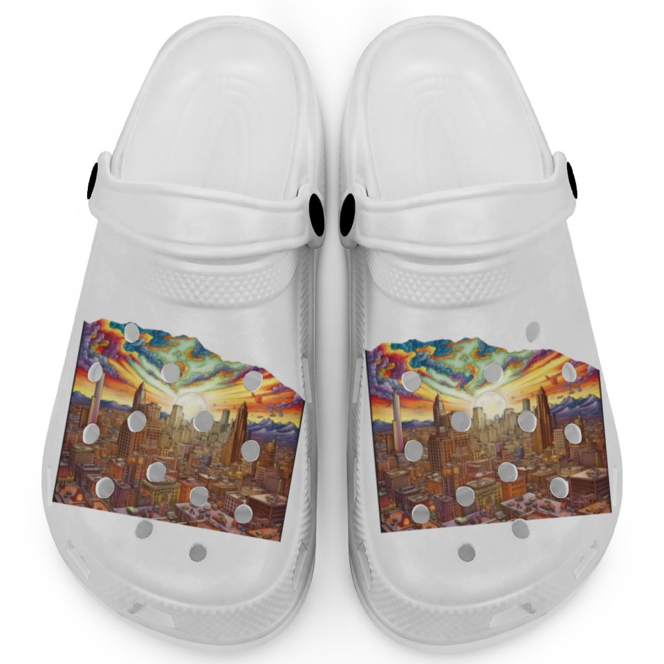 You are viewing one of the trendiest products "Phoenix 3D Radiance A Limited Edition Cityscape Clogs For Kids WHITE belong theme Clogs at Printblur