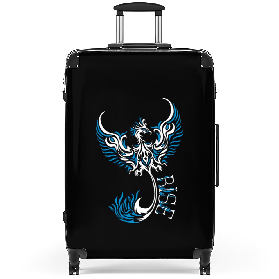 The item hot trend you're looking at is PHOENIX Tattoo/Tribal art - White and Blue,, Suitcases For Black belong theme Suitcases at Printblur