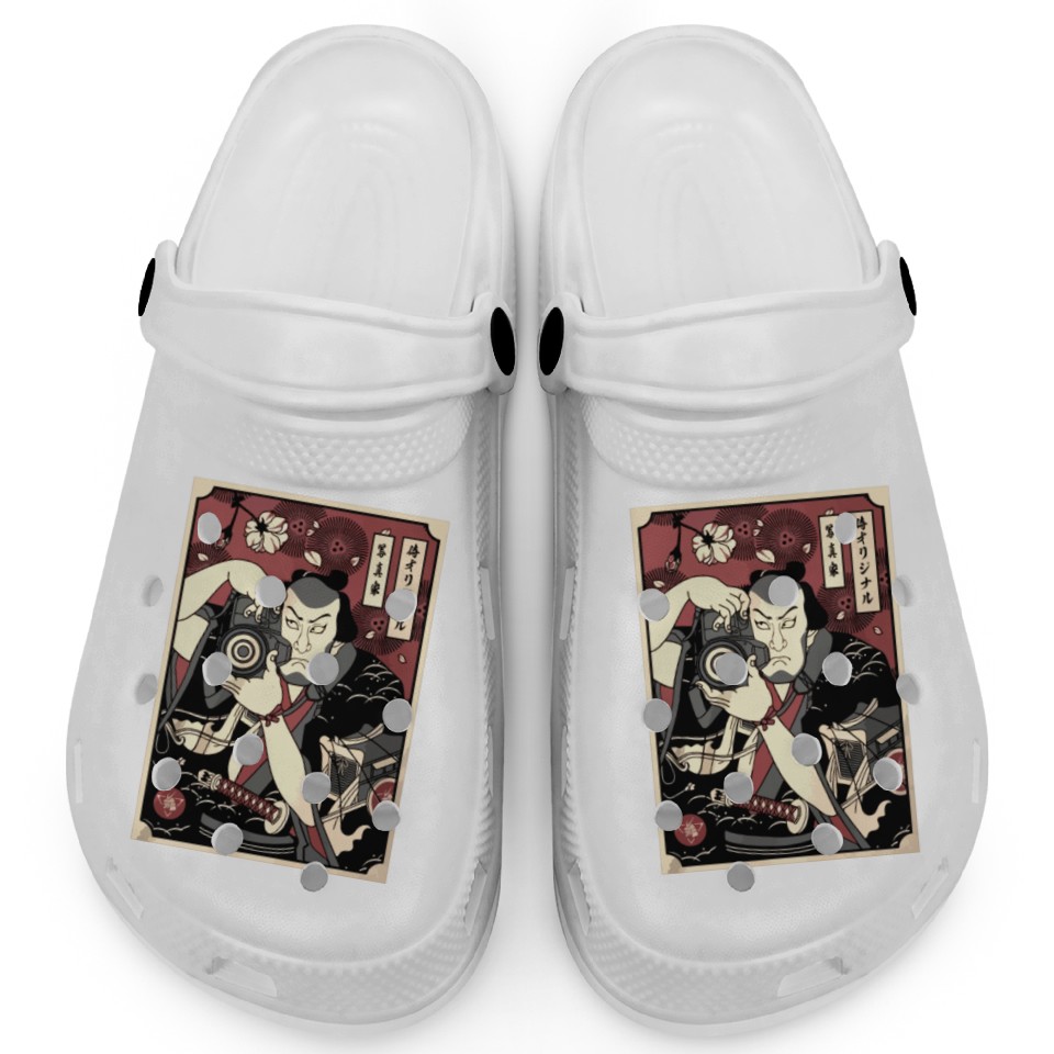 Shop for attractive PHOTOGRAPHER SAMURAI MEN PICTURE JAPANESE Clogs or see more Clogs products on https://printblur.com right now!