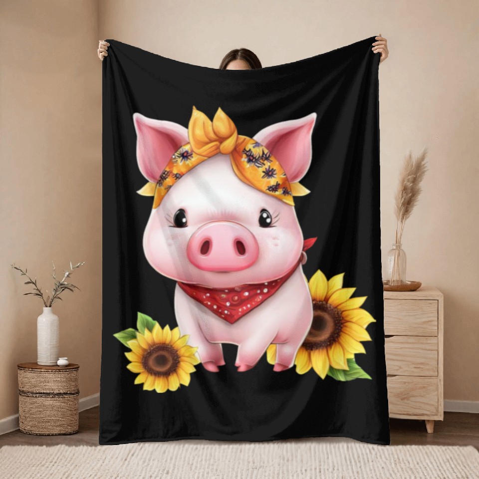 Shop for attractive Pig with Bandana and Sunflower, Charming Farm Throw Blankets or see more Throw Blankets products on https://printblur.com right now!