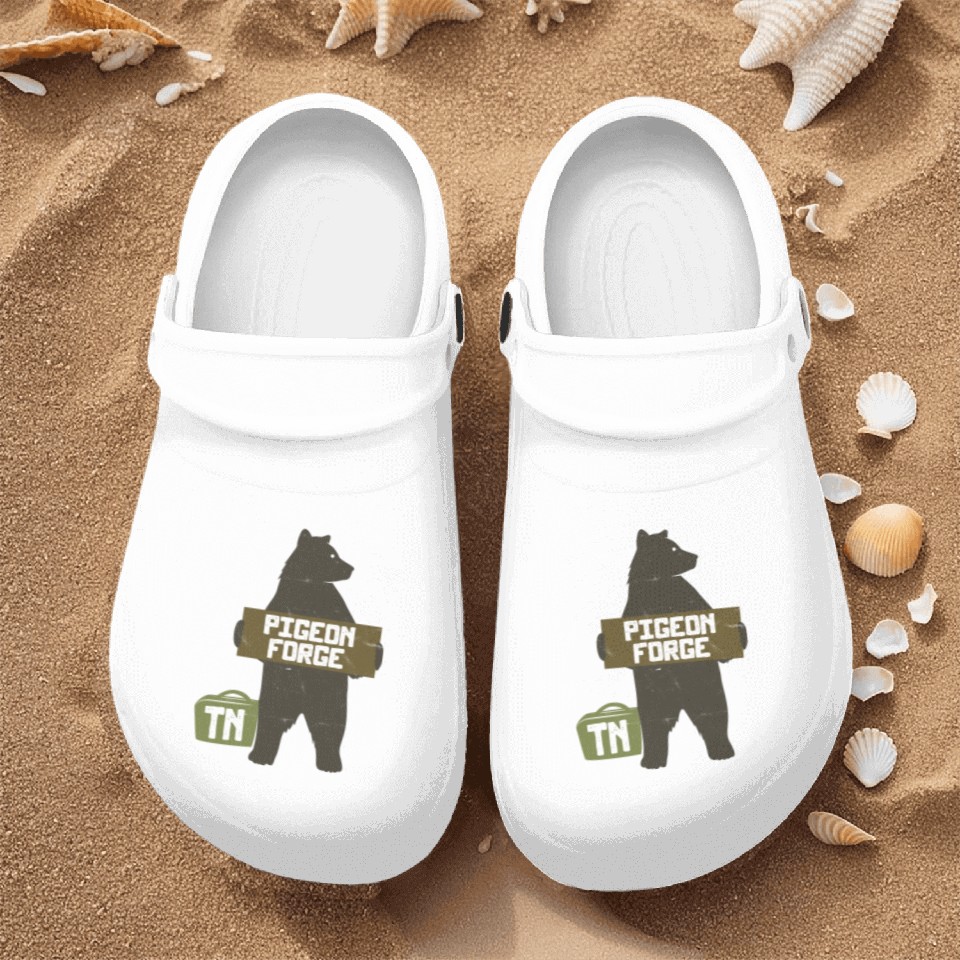 You're taking a peek at the product Pigeon Forge Tennessee Great Smoky Mountains Bear Nurse Clogs For Men WHITE belong theme Nurse Clogs at Printblur