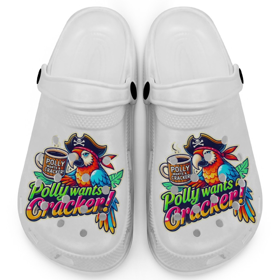 The item hot trend you're looking at is pirate parrot holding a coffee cup design Clogs For Kids WHITE belong theme Clogs at Printblur