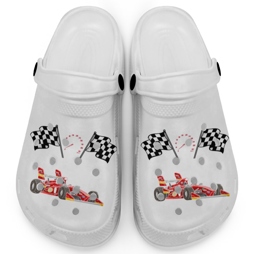 You are seeing a unique and impressive product Pit Crew Racing Clogs For Kids WHITE belong theme Clogs at Printblur