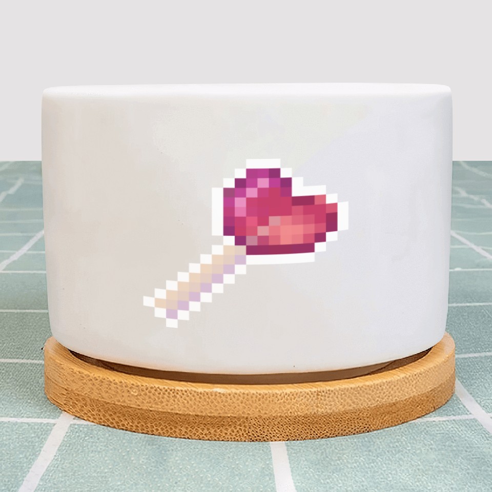 You're taking a peek at the product Pixel Art Sprite Cute Heart Lollipop Plant Pots For WHITE belong theme Plant Pots at Printblur