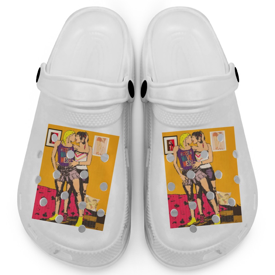 You are seeing a unique and impressive product Pixel hot lesbians kissing Clogs For Kids WHITE belong theme Clogs at Printblur