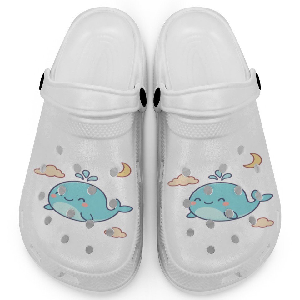 You are viewing an exclusive and elegant product Playful Blue Whale Cartoon Design Clogs For Kids WHITE belong theme Clogs at Printblur