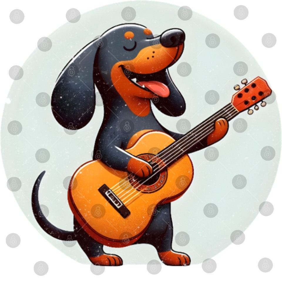 You're looking at the eye-catching product Playful Dachshund Guitar Badge Digital Files For WHITE belong theme Digital Files at Printblur