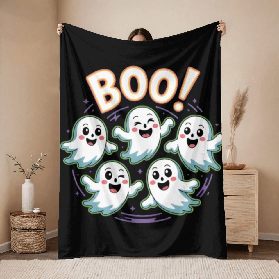 Own fascinating Playful Halloween Ghosts Illustration Throw Blankets or see more Throw Blankets products now from Printblur shop to enjoy your shopping time!
