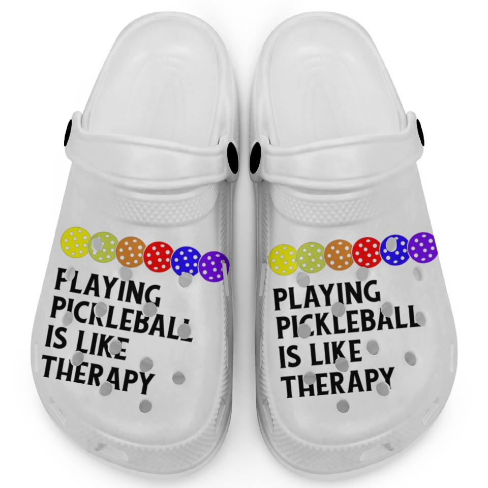 Own fascinating Playing Pickleball Is Like Therapy funny Gift Clogs or see more Clogs products now from Printblur shop to enjoy your shopping time!