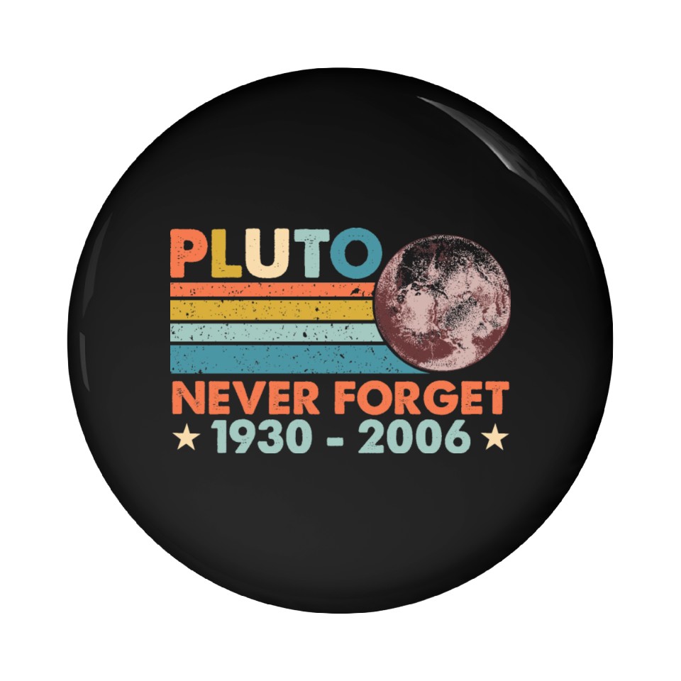 You're looking at the eye-catching product Pluto Never Forget Astronomy Space Science Nerd Pin Buttons For Black belong theme Pin Buttons at Printblur