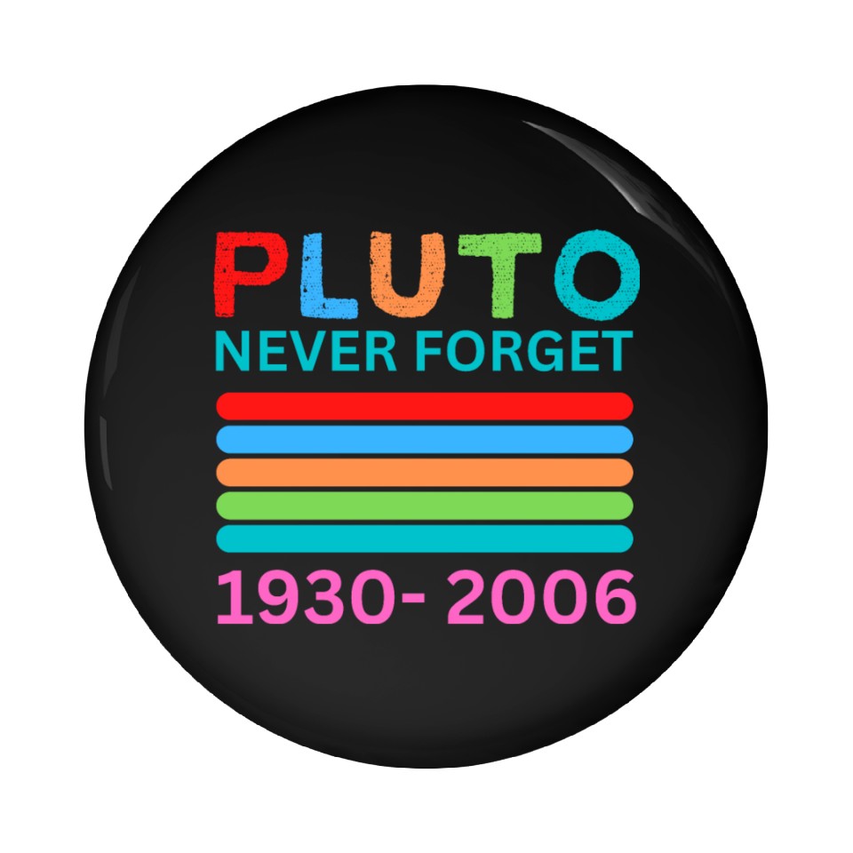 You're searching for a one-of-a-kind product Pluto Never Forget Retro Space Science Pluto Pin Buttons For Black belong theme Pin Buttons at Printblur