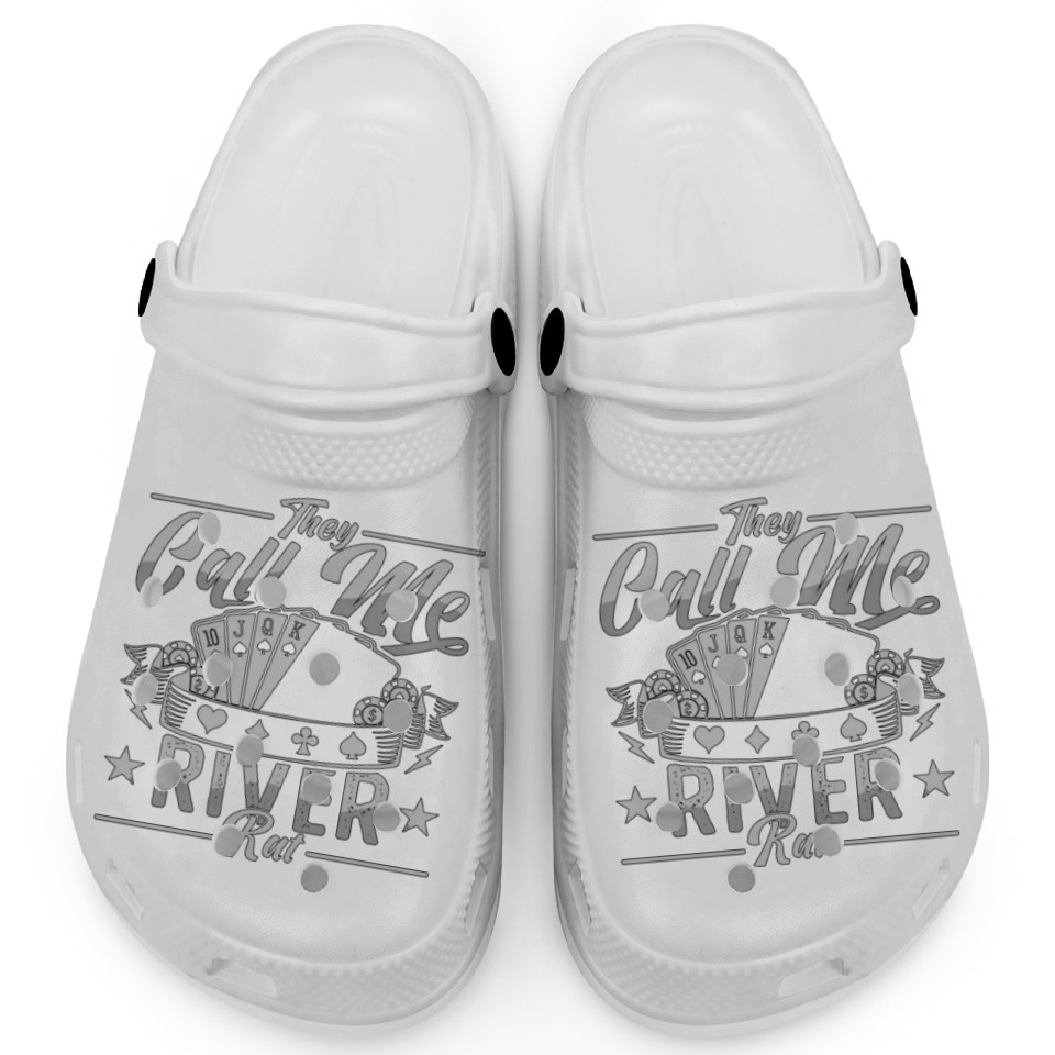 You're taking a peek at the product Poker Dice They Call Me River Rat Loves Card Game Clogs For Kids WHITE belong theme Clogs at Printblur