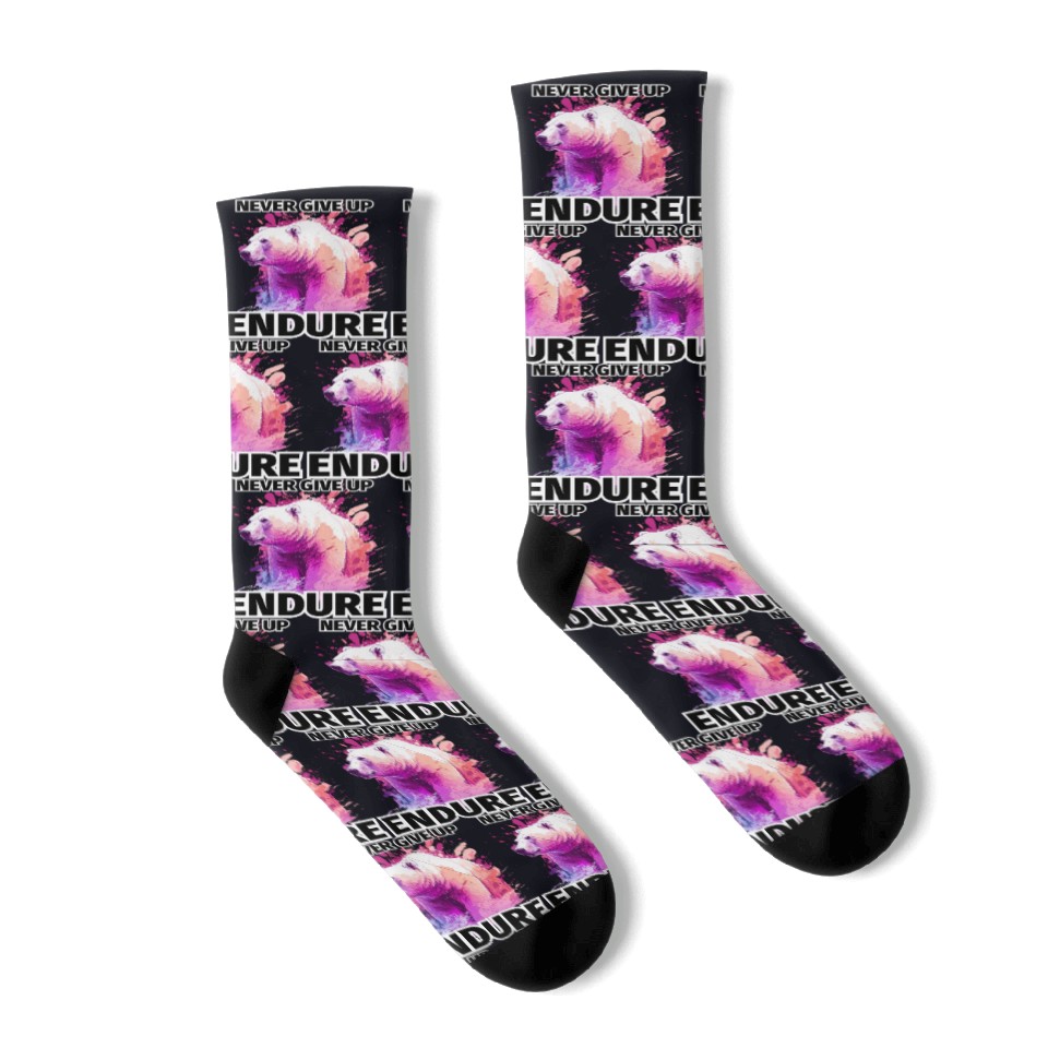 Buy stunning Polar Bear Never Give Up, Endure Socks or see more Socks products at Printblur right now to receive many amazing discounts!
