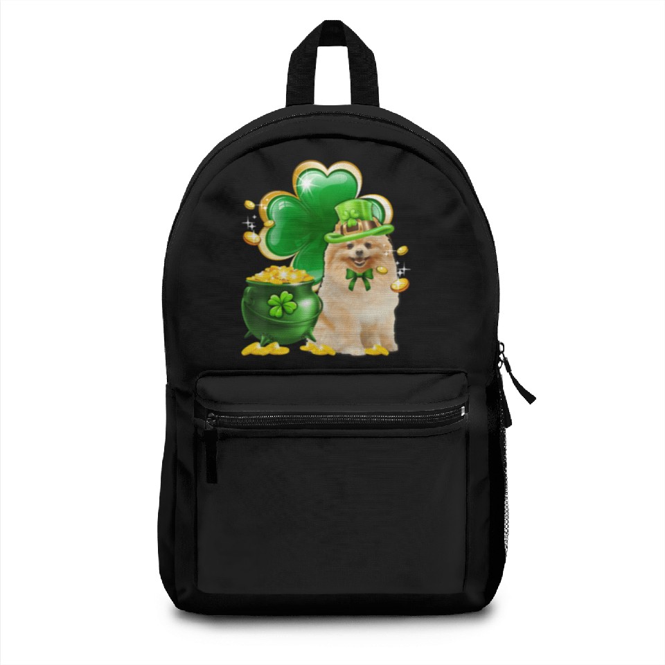 You are viewing an exclusive and elegant product Pomeranian Dog Shamrock St Patricks Day Backpacks For Black belong theme Backpacks at Printblur
