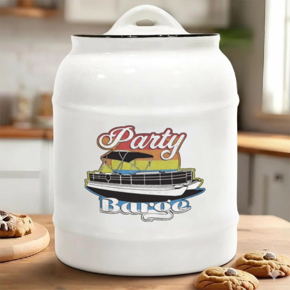 You are seeing a unique and impressive product Pontoon Boat Retro Party Barge Lake Life Ceramic Cookie Jars For belong theme Ceramic Cookie Jars at Printblur