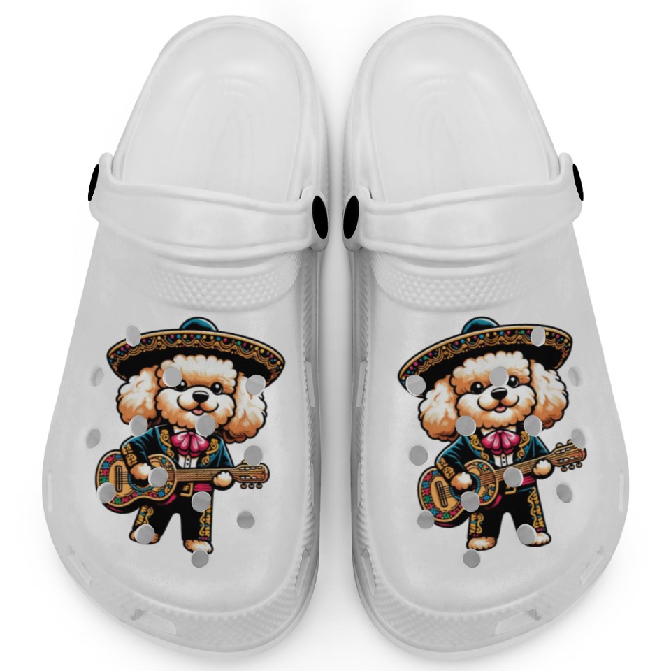 You're taking a peek at the product Poodle as Mariachi Guitarist Cinco de Mayo Clogs For Kids WHITE belong theme Clogs at Printblur