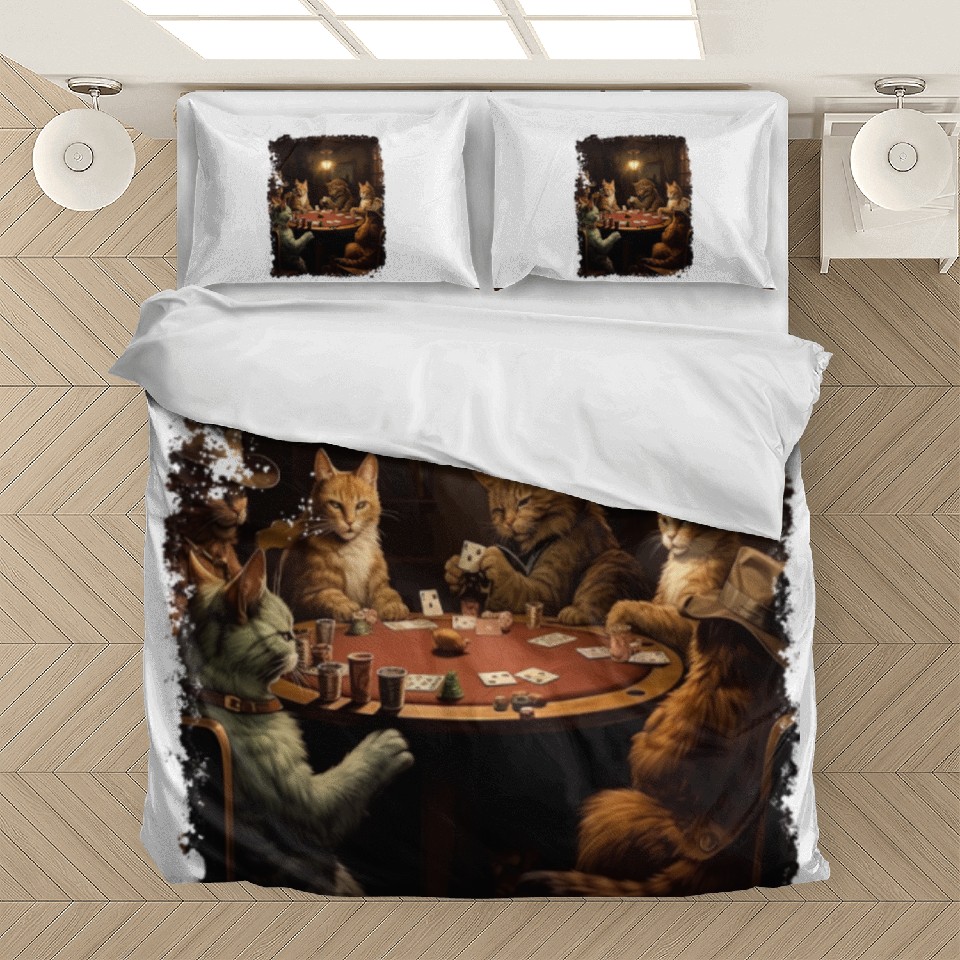 Buy eye-catching Pop Art Gambling Cat Playing Poker Cards Bedding Sets or see more Bedding Sets products at Printblur shop now to explore many surprises from our shop!