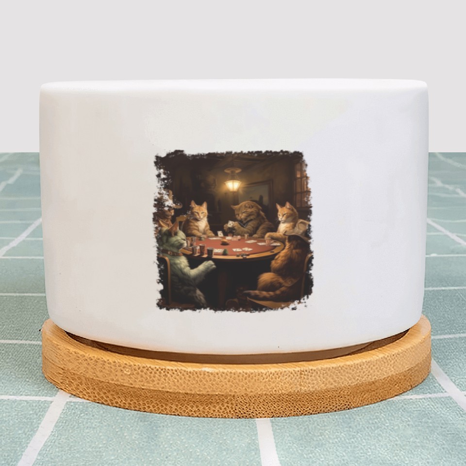 You are shopping for a stunning and trendy product Pop Art Gambling Cat Playing Poker Cards Plant Pots For WHITE belong theme Plant Pots at Printblur