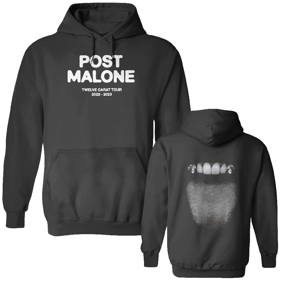 Own fascinating Post Malone Twelve Carat 2022 Tour Hoodie or see more Double Sided Hoodies products now from Printblur shop to enjoy your shopping time!