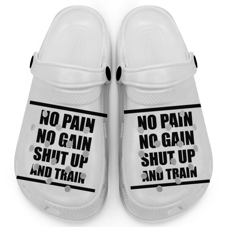 You are shopping for a stunning and trendy product Poster NO PAIN NO GAIN Square Clogs For Kids WHITE belong theme Clogs at Printblur