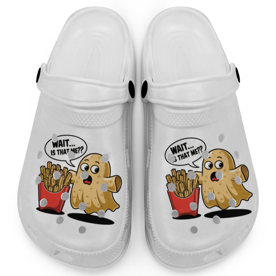 The item hot trend you're looking at is Potato Ghost Afterlife Fries Surprise Clogs For Kids WHITE belong theme Clogs at Printblur