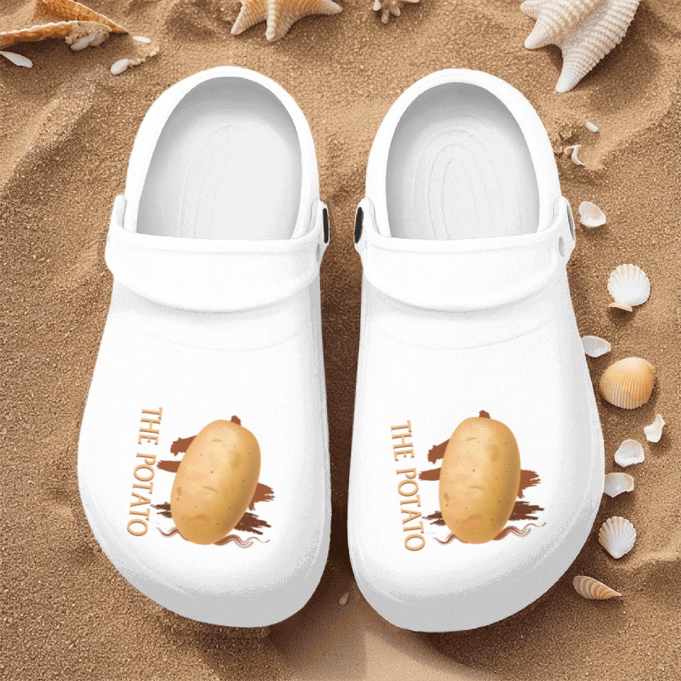 You're taking a peek at the product Potato Vegetable Nurse Clogs, Respect The Potato Nurse Clogs, For Men WHITE belong theme Nurse Clogs at Printblur