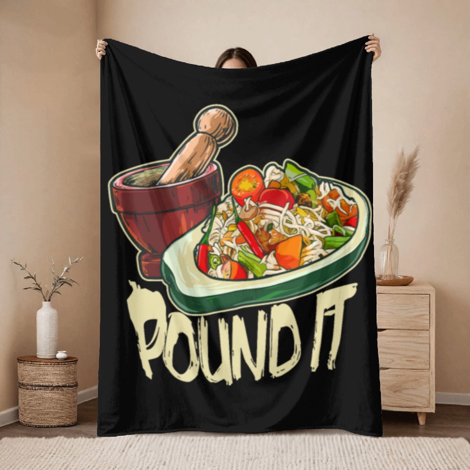 You are viewing one of the trendiest products Pound It Green Spicy Thai Papaya Salad Throw Blankets For Black belong theme Throw Blankets at Printblur