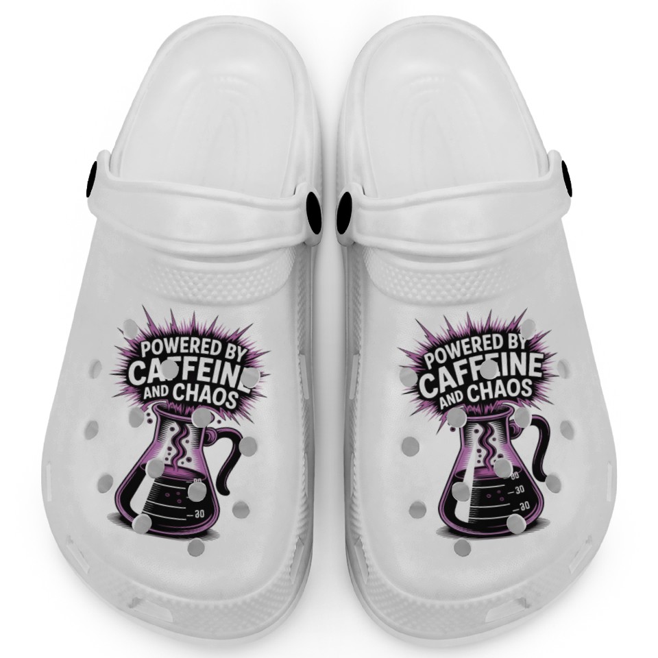 Shop for impressive Powered by Caffeine and Chaos Funny Energy Quote Clogs or see more Clogs products right now on Printblur to enjoy your happiness!