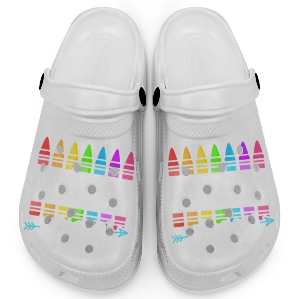 You are viewing an exclusive and elegant product Pre-K Crew Teacher Team Squad Hello Back School Gr Clogs For Kids WHITE belong theme Clogs at Printblur