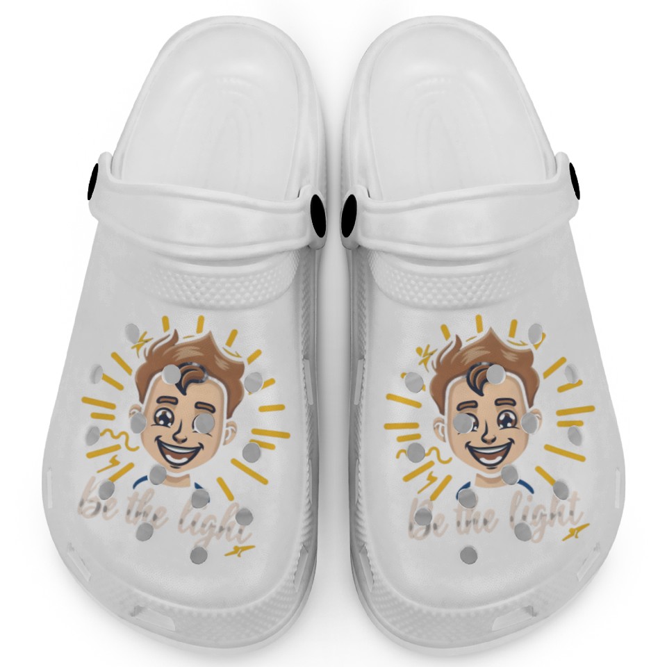 You're looking at the eye-catching product Premium Design of Be The Light Clogs For Kids WHITE belong theme Clogs at Printblur