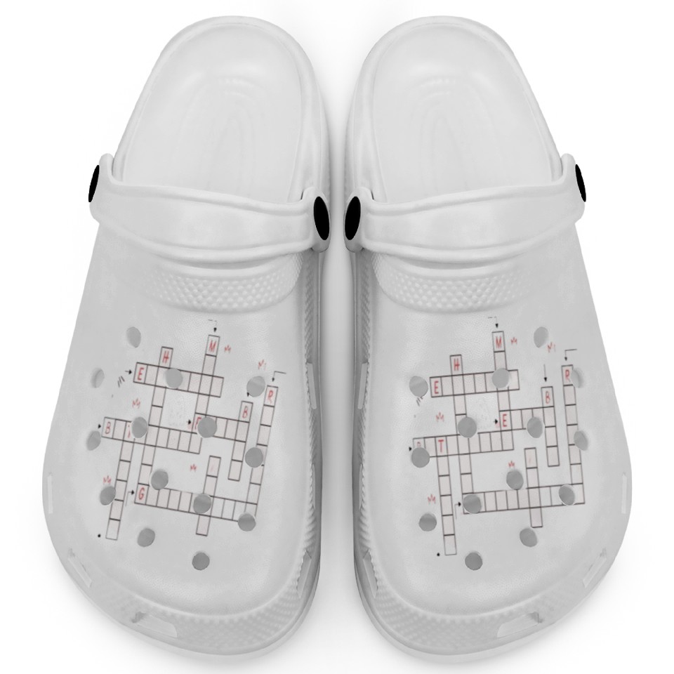 You're looking at the eye-catching product Preppy Crossword Clogs – Stylish & Fun Word Puzzl For Kids WHITE belong theme Clogs at Printblur