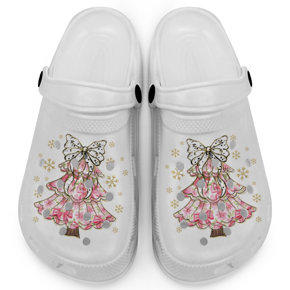 Preppy Pink Coquette Bow Xmas Tree Clogs